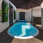 Tot de badkamerfaciliteiten van deze 1-slaapkamer Tiny Pool House Villa behoren ook een apart toilet en een douche. Een haardroger en badlakens zijn inbegrepen voor extra comfort.